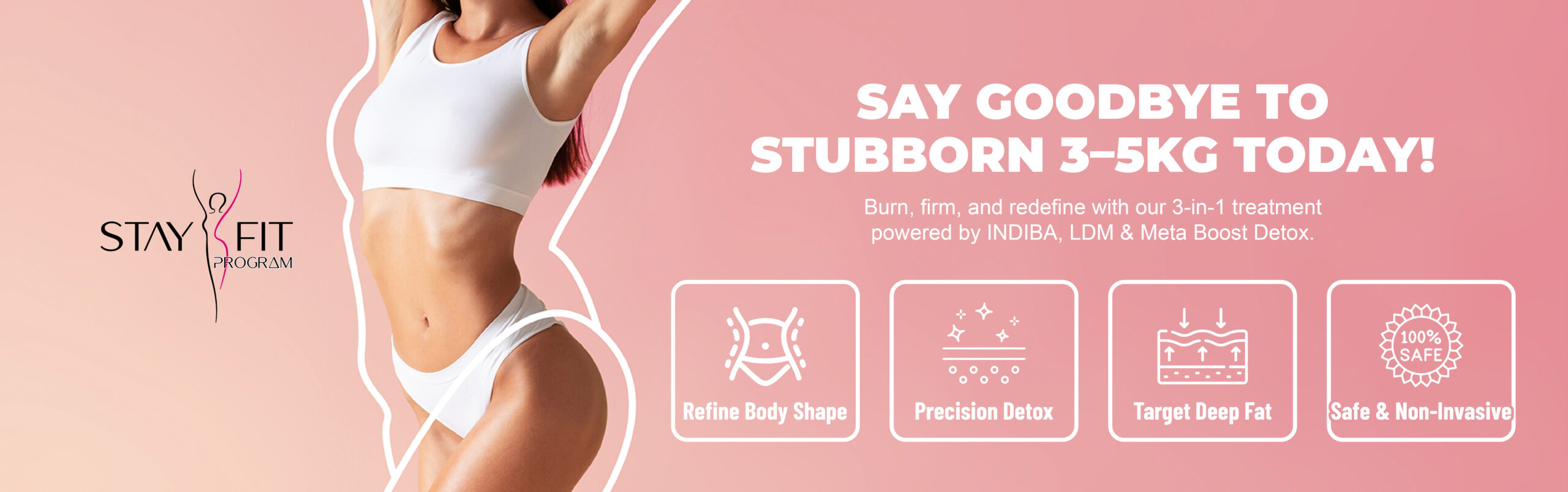 Results can vary depending on your body goals and the severity of the concern. However, the STAY FIT Program is designed to instantly target stubborn fat, reduce cellulite, and combat skin aging. Most clients see visible improvements after just one session, with more noticeable, long-lasting results after 2–5 sessions.